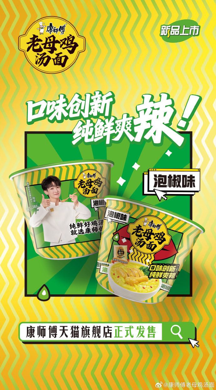 2. 康师傅上新「泡椒味 老母鸡汤面」