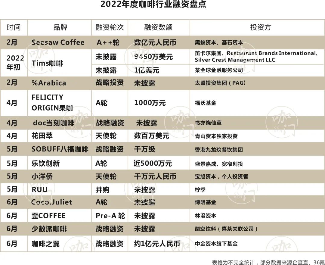 而到了今年上半年,咖啡领域的融资,多为百万级、千万级的小额度融资。