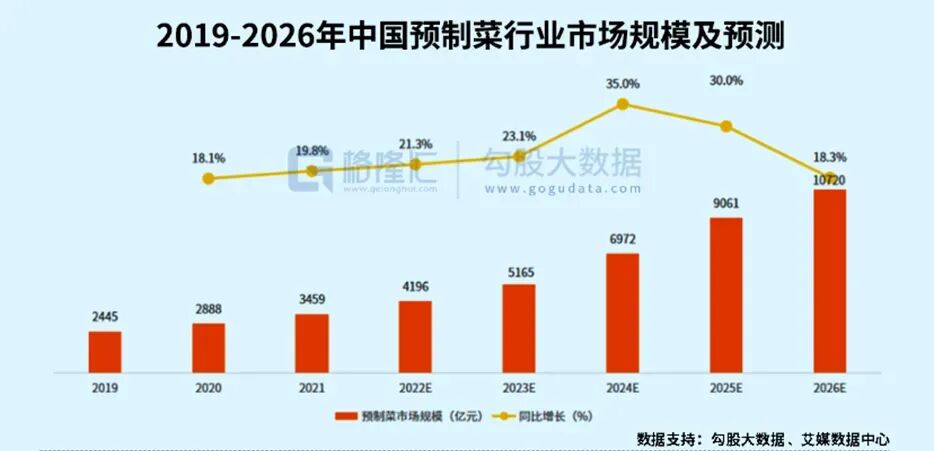 根据艾媒咨询《2023-2025年中国预制菜行业运行及投资决策分析报告》,2022年中国预制菜市场规模为4196亿元,同比增长21.3%,到2026年,预制菜市场规模将达10720亿元,直接翻倍。