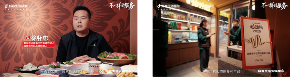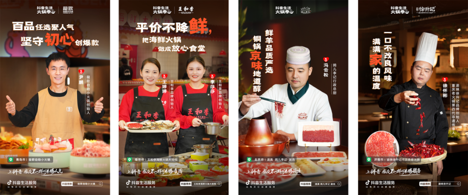 近期抖音生活火锅季发布的沸腾商户视频,「龍歌自助小火锅、王和李海鲜火锅大排档、鸦儿李记、渝味徐升记不改良老火锅」以不同的特色,精准切入细分市场,结合平台的深度运营,从“特色突围”到“数字增长”的完整路径,并赢得持续沸腾增长。