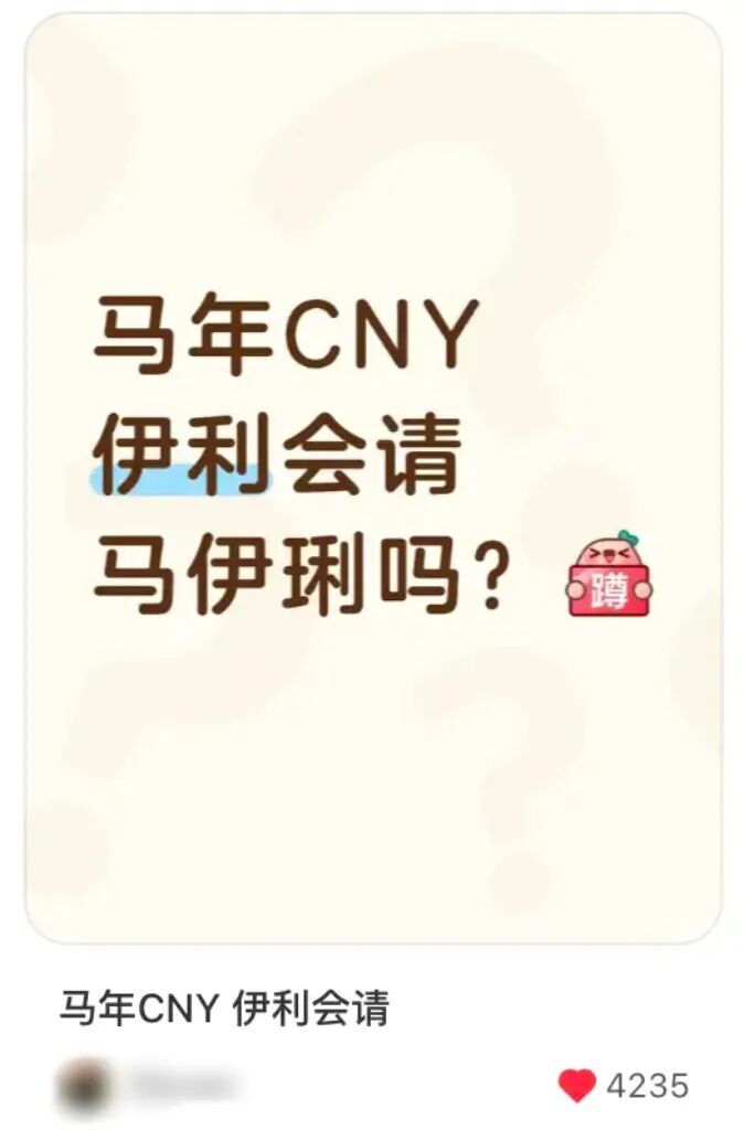 然鹅今年画风突变,还没等小生们打开 PPT ,网友们倒是先行一步,替品牌们提上案了。有网友发帖问:马年 CNY ,伊利会请马伊琍吗?