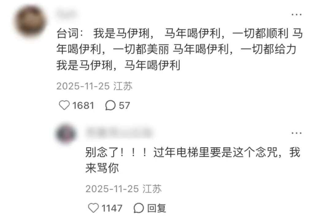牛马搬砖版:“大家好,我是马伊琍,马年喝伊利,搬砖更卖力。”