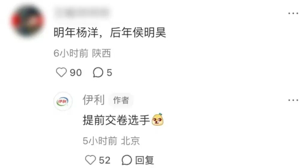 广告圈来了批天才网友,照这样找代言人的逻辑,伊利明后两年的代言人都给找好了:羊年杨洋,猴年侯明昊。