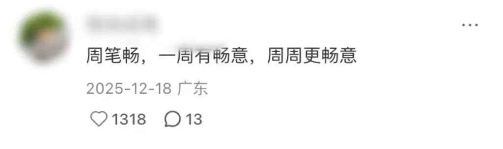 周笔畅:“一周必通畅,简称周必畅。”、“一周有畅意,周周更畅意。”