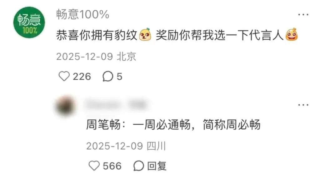 在一众网友为伊利展开头脑风暴之际,一旁眼馋的畅意突然出现在评论区,在线向网友征集代言人方案。这届网友简直成了品牌的“野生策划部”,于是,你会看到一轮又一轮的广告人比稿大会