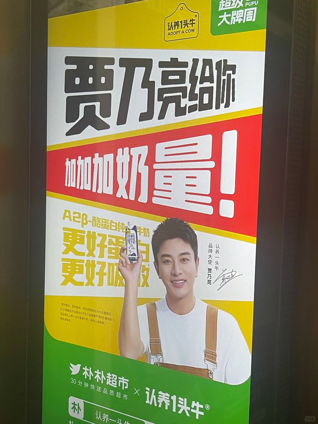 认养一头牛邀请贾乃亮成为品牌大使,因为「贾乃亮」=「加奶量」,“贾乃亮给你加加加奶量”,强调了自家牛奶奶量足的特点,简单又直接。