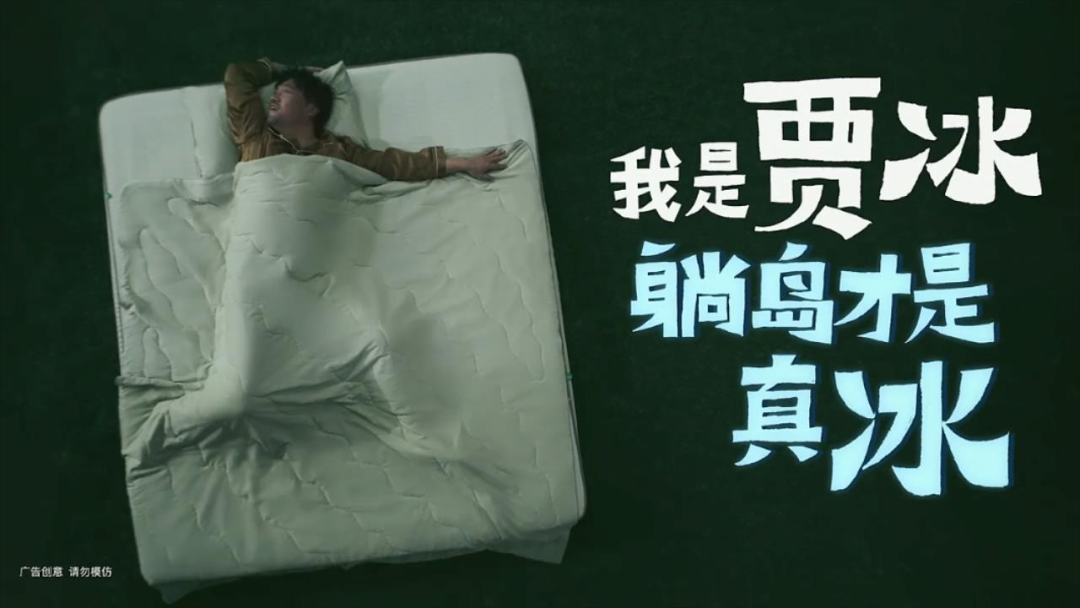 还有躺岛找到「真冰」代言人贾冰,为了凸显在炎炎夏日自家瓜瓜凉被“自然凉感”的产品卖点。