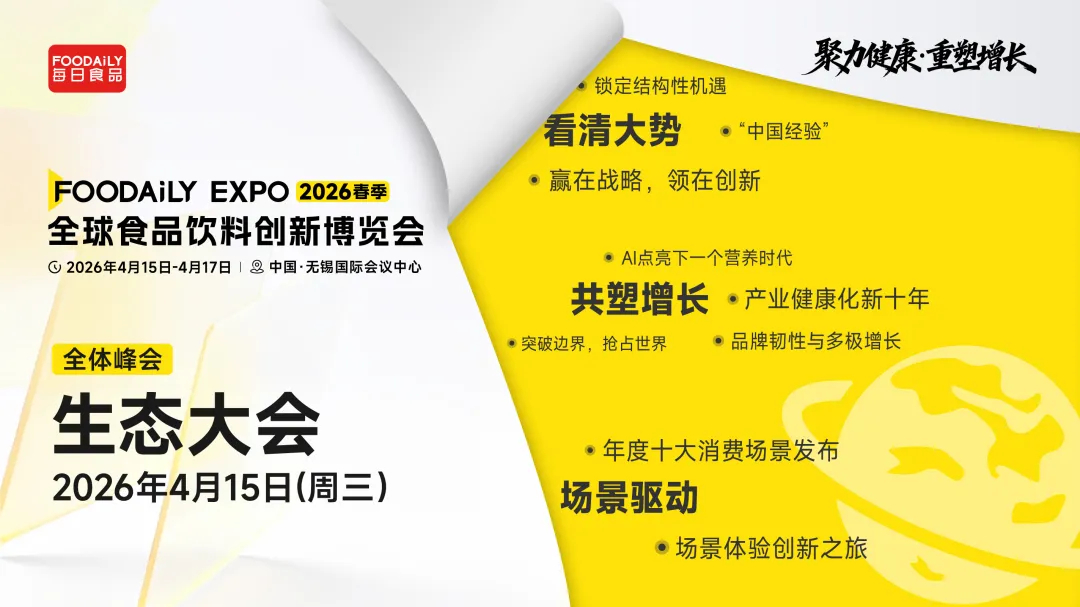 为此,2026 Foodaily全球食品创新博览会,锁定「聚力健康 · 重塑增长」的核心主题,这不仅是行业共识,更是下一个十年的增长起点!