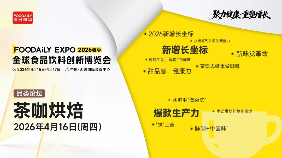 在2026 Foodaily创新博览会的茶咖烘焙品类论坛中,我们将聚焦这场变化下的新增长坐标:体验如何成为穿越周期的核心资产?基底、食材与风味如何多元突破,延伸至餐食与零售,打开更大的价值空间?