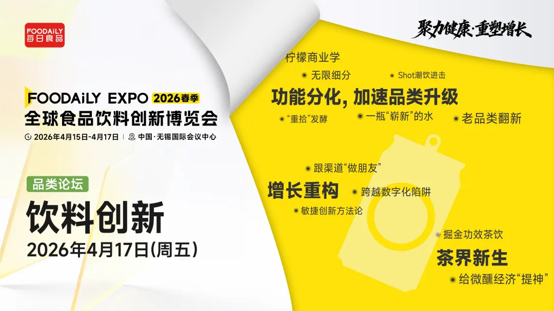 饮料市场从未缺乏新概念,但真正的机会藏在细分与场景中。2026 Foodaily创新博览会的饮料创新品类论坛,将聚焦哪些潜力品类正在成为市场“变量”,以及品牌如何在高度内卷中走出清晰的差异化路径。