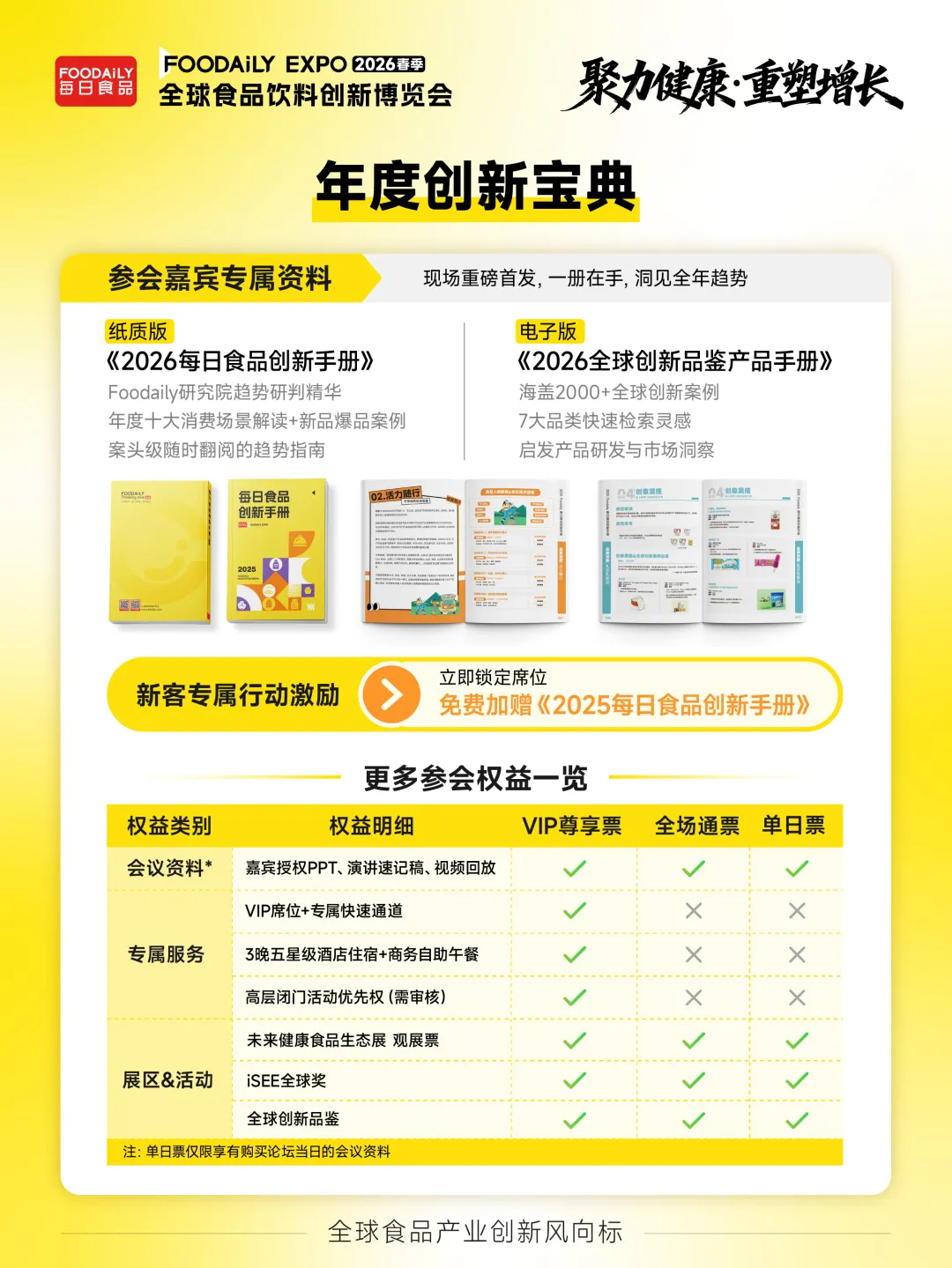 纸质版《2026每日食品创新手册》:汇总Foodaily研究院年度趋势研判、十大消费场景解读及新品爆品案例,让你随时翻阅、洞察全年度趋势;