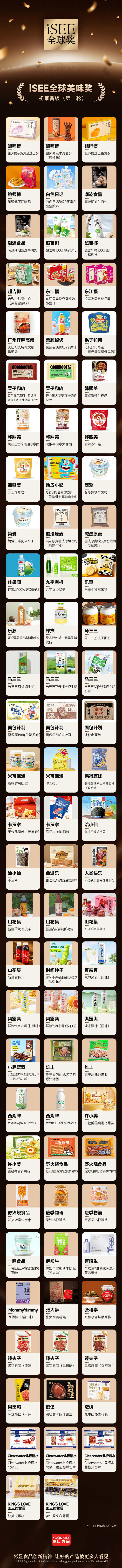 2026 Foodaily创新博览会暨未来健康食品生态展(2026年4月15-17日,江苏无锡)已正式启动,作为三大板块之一「创新奖项」的iSEE全球奖,现已进入关键评审阶段 —— 今日,【iSEE全球美味奖首轮初审晋级名单】正式公布!100个涵盖乳饮、零食、烘焙等品类的优质食品案例成功晋级,而这些晋级后最终获奖的案例,将在“iSEE大赏”现场集中亮相。报名参展的获奖品牌除了有获奖特别标识,也会参与到我们组织的渠道对接活动,为好的产品提供加速进入市场的机会。