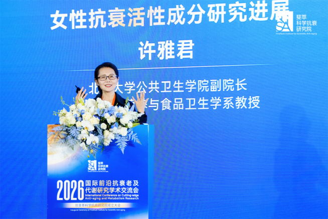北京大学公共卫生学院副院长、北京大学营养与食品卫生学系教授许雅君在《女性抗衰活性成分研究进展》分享中,系统梳理女性衰老的生理特点与关键机制,重点介绍多类抗衰活性成分的临床证据,如胶原蛋白、麦角硫因、大豆异黄酮、辅酶Q10等,强调“循证依据”与“早期干预”的重要性。随着人工智能与深度学习的发展,未来有望发现更多抗衰靶点与活性成分,为女性抗衰策略与产品创新提供新方向。