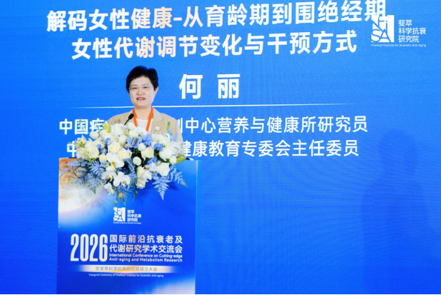 中国疾病预防控制中心营养与健康所研究员、中国女医师协会健康教育专委会主任委员何丽围绕《解码女性健康-从育龄期到围绝经期女性代谢调节变化与干预方式》展开分析,指出围绝经期是女性代谢紊乱与慢病风险累积的关键窗口,雌激素变化可引发系统性代谢重塑。她强调,营养、运动等生活方式干预对维持肌骨健康至关重要,并为女性全生命周期健康管理提供了科学依据。
