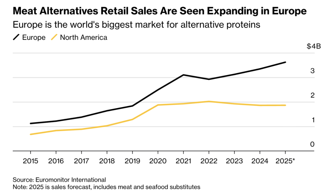 3.《Struggling Vegan Meat Companies Look to Europe for Sales Revival》,Bloomberg