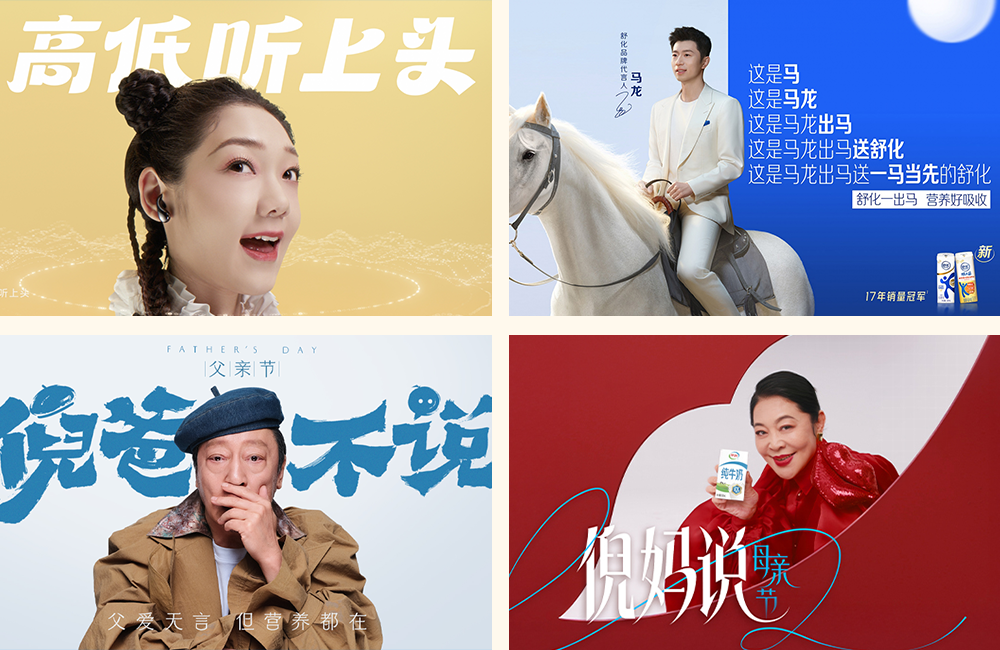 希林娜依·高的“高低听上头”与“马龙出马送舒化”同样洗脑,但往前一步,把产品特点糅于谐音梗中,品牌独占性更强;对于伊利,“倪妈倪爸”谐音梗只是起点,品牌将“爱的语言”柔软地包裹其中,让梗为创意服务。