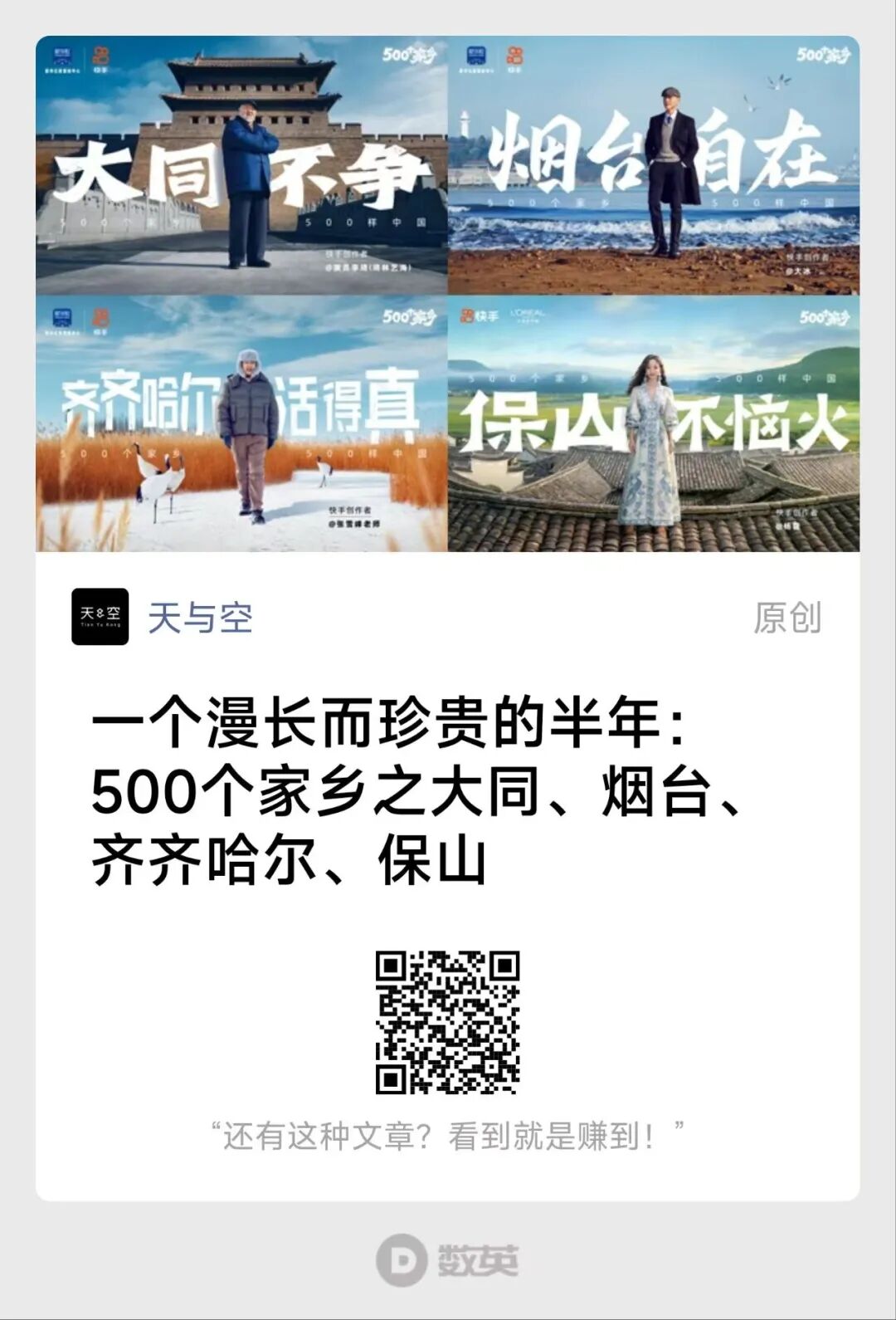 典型如快手“500个家乡”,继续大胆地为每座城市下一个全新的精神气质定义,不争的大同、自在的烟台、活得真的齐齐哈尔,城市气质里,也有我们为人想要活出的气质。