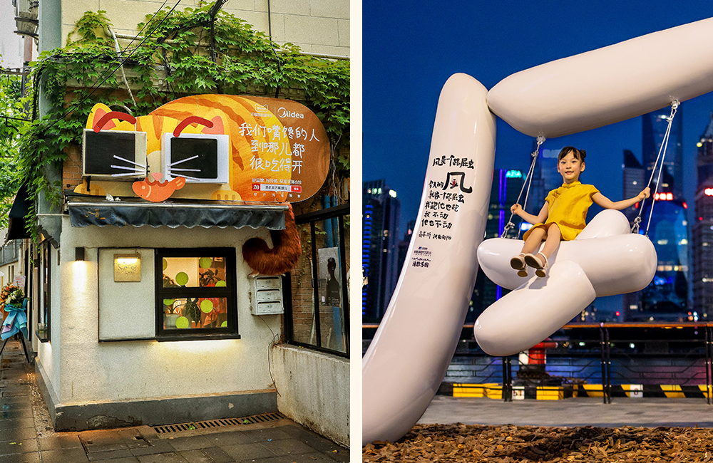 美的把城市空间变成展览舞台,把空调外机变为媒介,融入可爱广告牌,为漫步的人们点亮心情;中国银联在黄浦江边,以汉字造装置,筑一座乐园盛放人们的快乐,也让大山里小诗人的才华被看见。商业品牌的“功利感”在开放温暖的互动中消融。