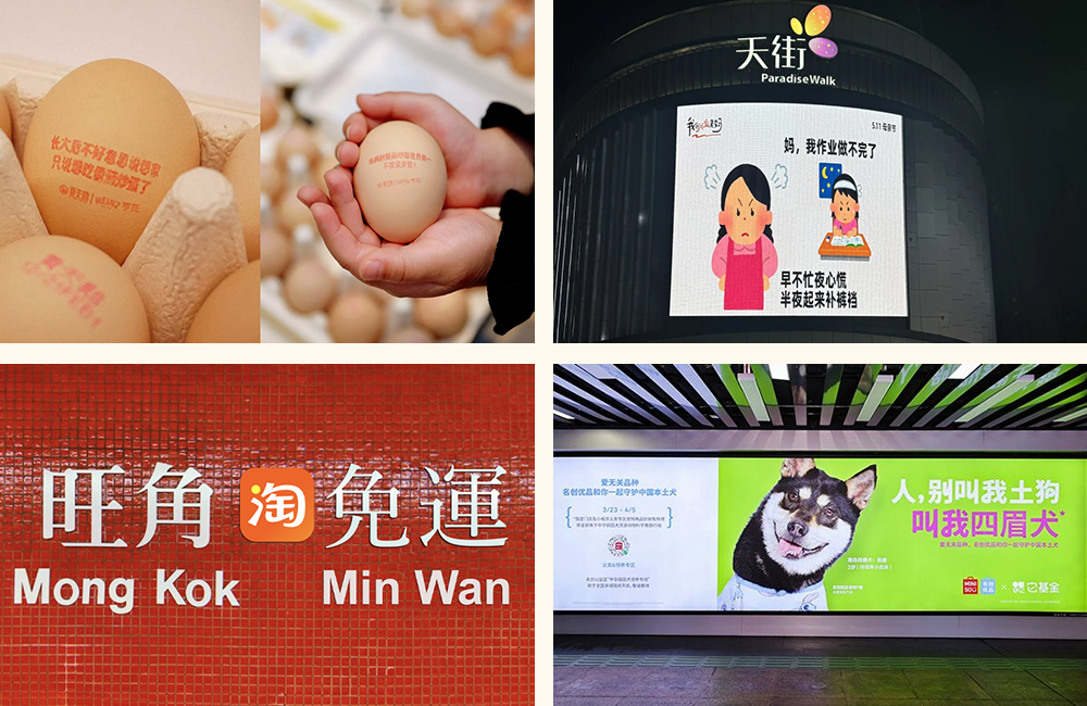 香港加入淘宝包邮区,于是淘宝用在地的语言,把“咩都包邮,包咩都有”讲透;名创优品“人,别叫我土狗”胜在为土狗正名的创意,再加一个简单“歪头杀”,关注自然而然;龙湖天街的户外大屏,不精致、不高端,但地道有梗的文案就会想让人转发。它也显示出,剥离预算投入、制作水准等众多buff,有创意,就够。