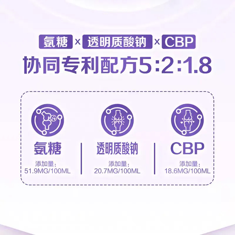 骨利安集合了CBP初乳碱性蛋白、氨糖、透明质酸钠、益生元、特种蛋白五大核心营养素。