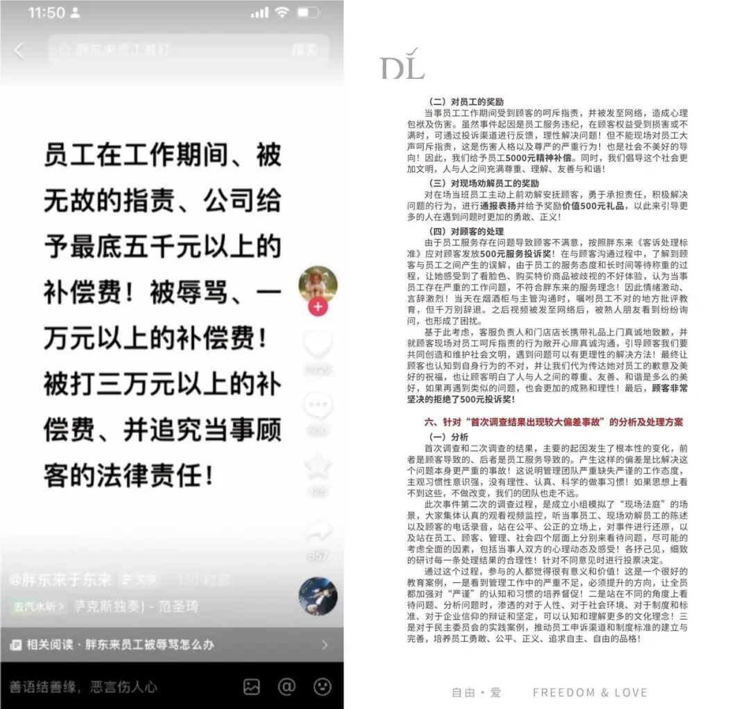 去年10月,胖东因开除一名12年老员工再上热搜,后者由于在顾客有需求时未及时迎客,被判定为“严重违反公司的规章制度”。