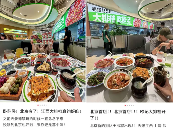 比如欧记大排档在北京大悦城开出首店,凭借正宗赣味和热闹的市井氛围,成为了“排队王”。
