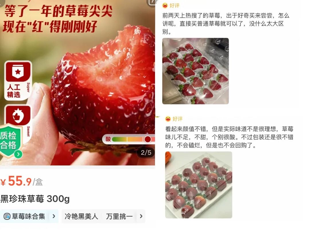 网购平台上,某标价315元/500g的黑草莓,显示“全网已热销2000+”。