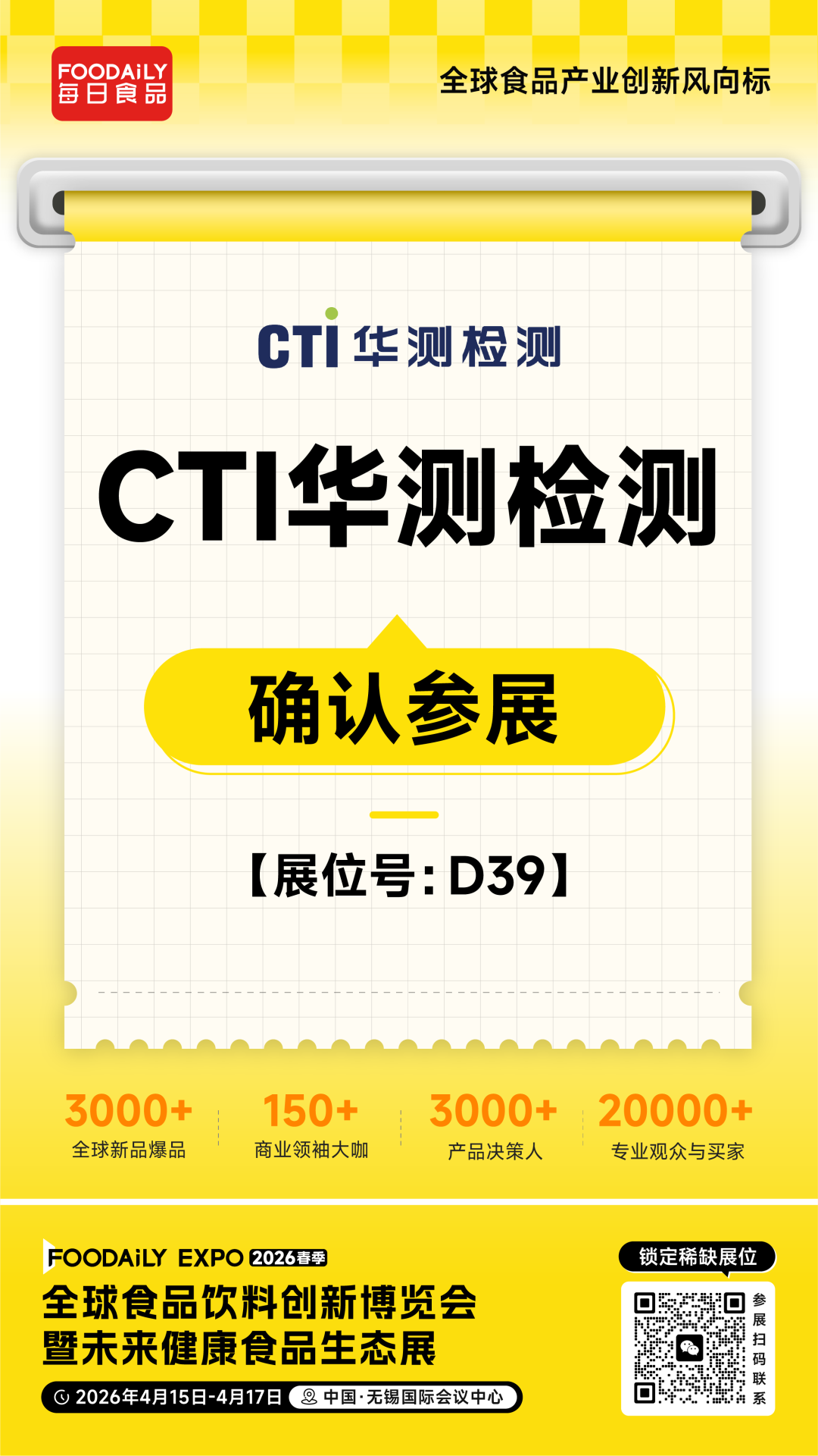 2026 Foodaily创新博览会,CTI华测检测将亮相于无锡国际会议中心,D39展位,邀业界同仁共探检测领域创新发展,共筑食品行业品质新生态!