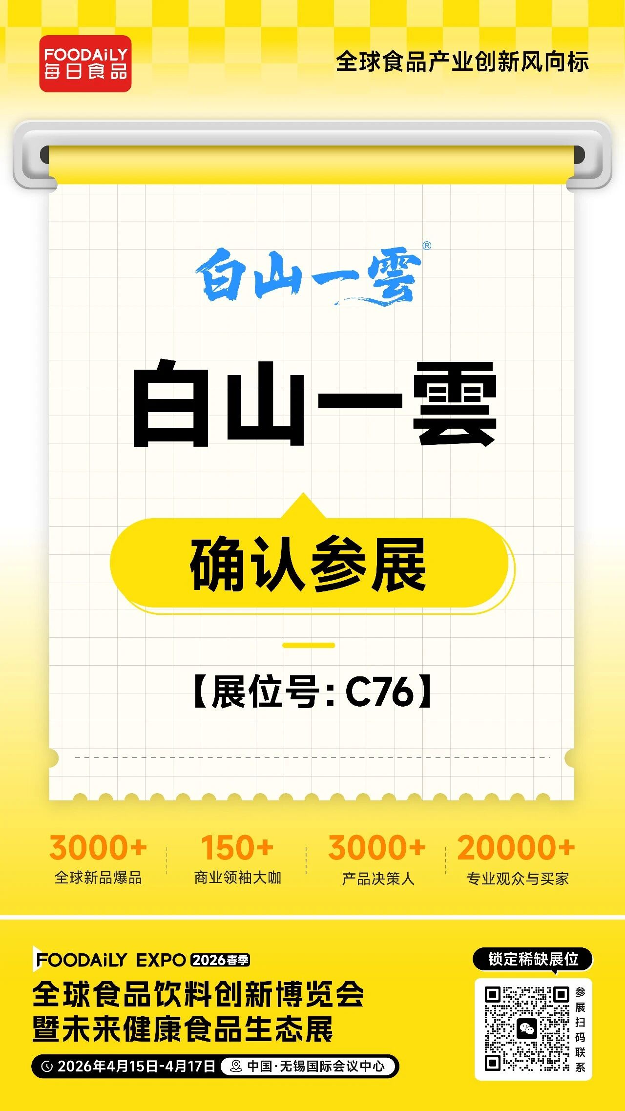 2026 Foodaily创新博览会,白山一雲将携旗下明星产品亮相于无锡国际会议中心,C76展位,诚邀业界同仁共话健康饮水产业新机遇,共启行业高质量发展新征程!