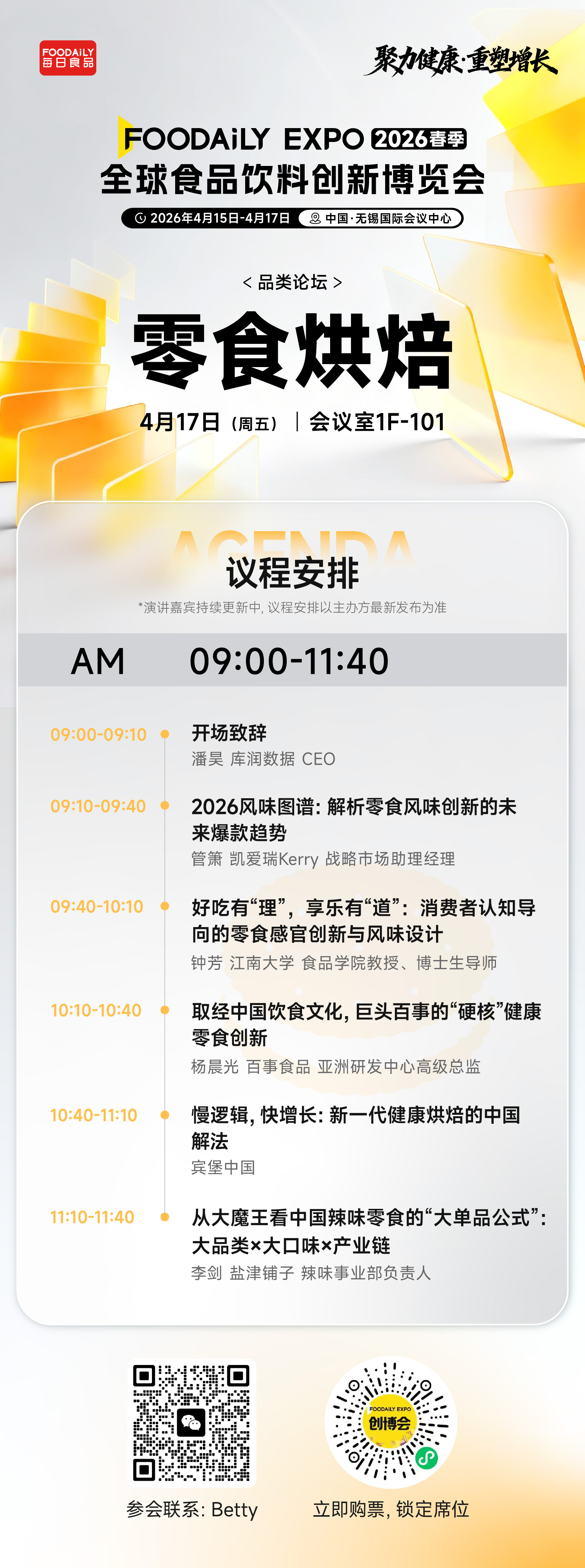 在这一轮变化之下,风味创新的下一步机会在哪里?健康理念如何转化为真正打动消费者的产品体验?传统饮食文化又该如何被重新激活,创造新的零食爆款?本论坛将围绕风味趋势、感官科学与爆品方法论,拆解零食赛道下一阶段的创新逻辑与增长机会。