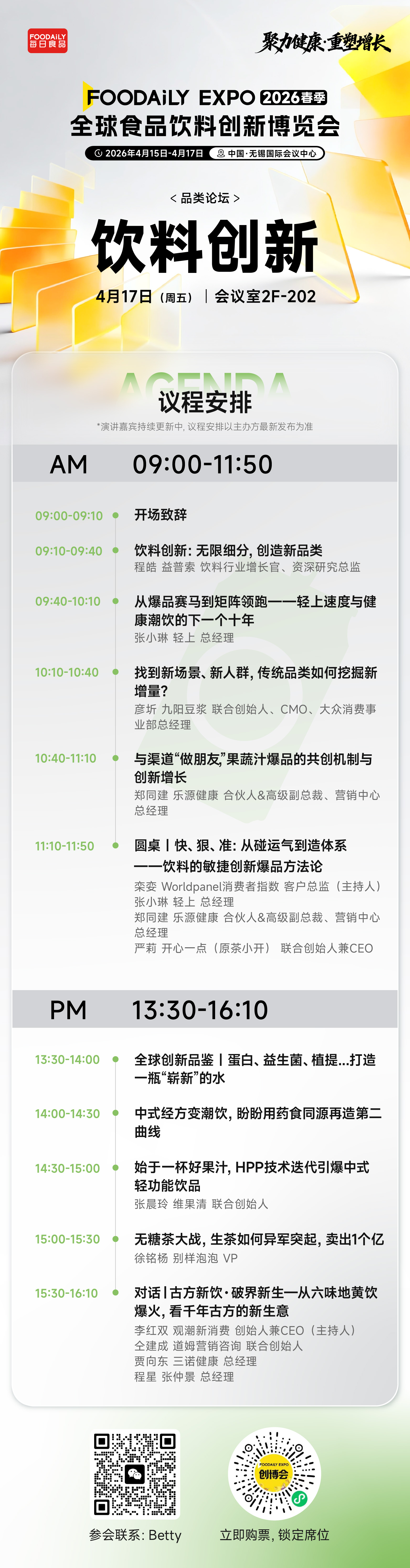 与此同时,渠道结构与消费热点的快速变化,也在倒逼品牌提升创新效率——从赌一个爆品,到构建持续造爆品的能力。哪些细分品类正在成为新的增长引擎?饮料品牌又该如何在高密度竞争中捕捉趋势、快速创新并放大爆品?本论坛将围绕品类创新、技术突破与爆品方法论,拆解饮料行业下一阶段的增长机会。