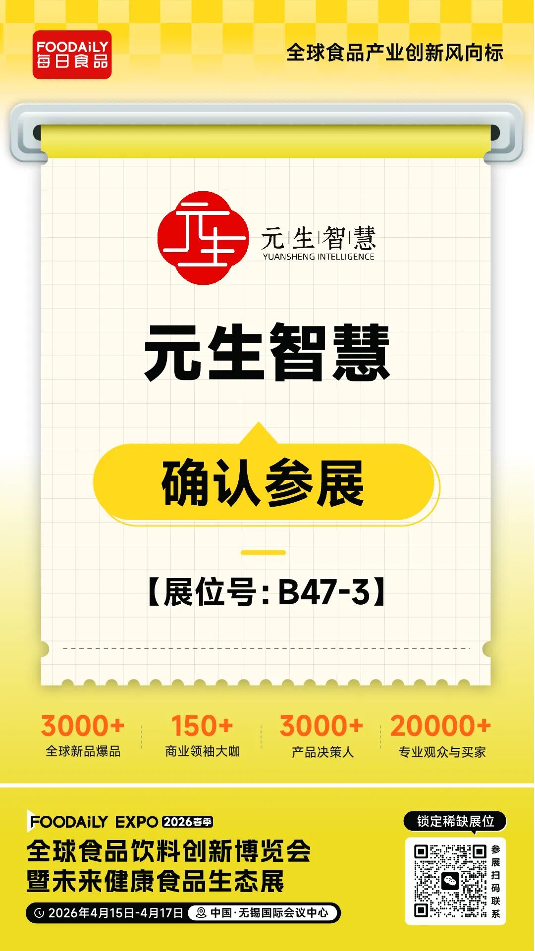 2026 Foodaily创新博览会,元生智慧将携旗下明星产品矩阵精彩亮相无锡国际会议中心,B47-3展位,邀业界同仁共探健康食品创新研发新路径,共启食品产业新未来!