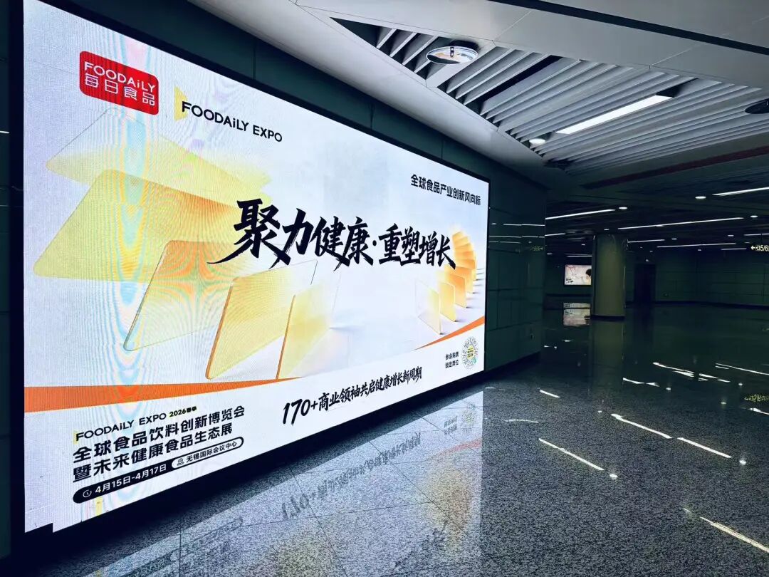 展会迎来一则重要动态——整合传播方案提供商【青梧映画】成为2026 Foodaily创新博览会的官方媒体伙伴!以会议主场城市无锡为传播据点,深度发挥地铁LED大屏的曝光与影响力,日均触达160万城市主流人群,让展会声量倍增。