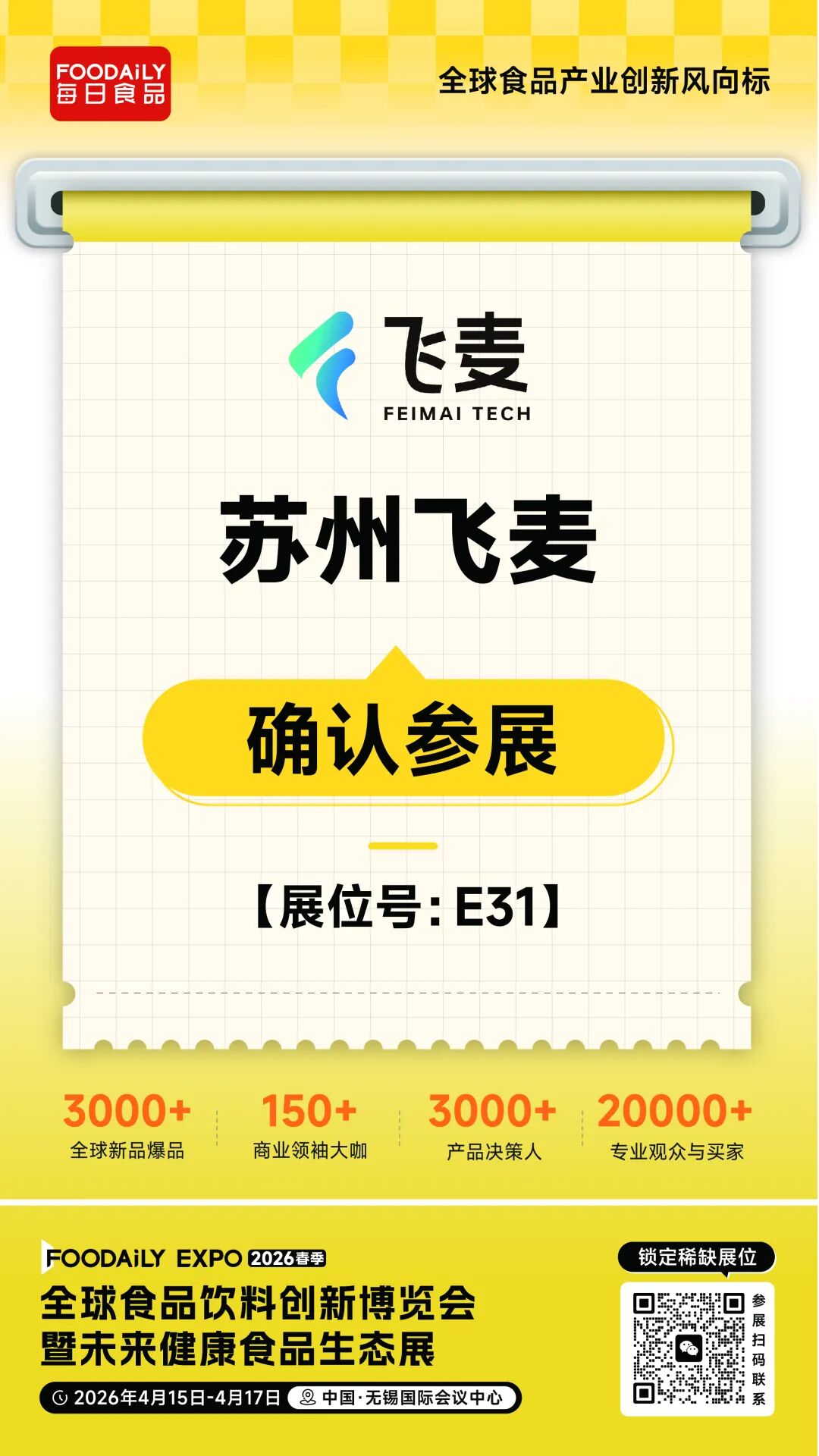 2026 Foodaily创新博览会,飞麦将携旗下一站式产品推广服务精彩亮相无锡国际会议中心,E31展位,邀业界伙伴共探全域种草与生意转化的新玩法,共启健康食品营销提效的新未来!