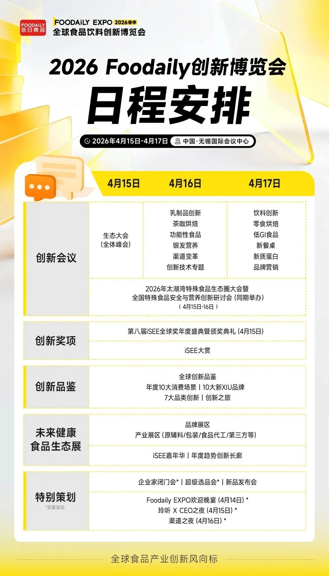 2026年4月15日-17日,中国·无锡国际会议中心,第十一届Foodaily 全球食品饮料创新博览会即将盛大启幕!