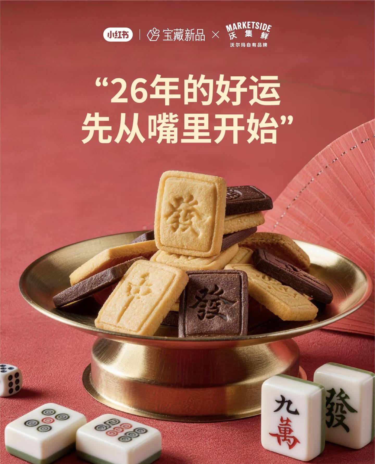 沃集鲜 x 小红书联名上新「把把赢麻将曲奇饼干」