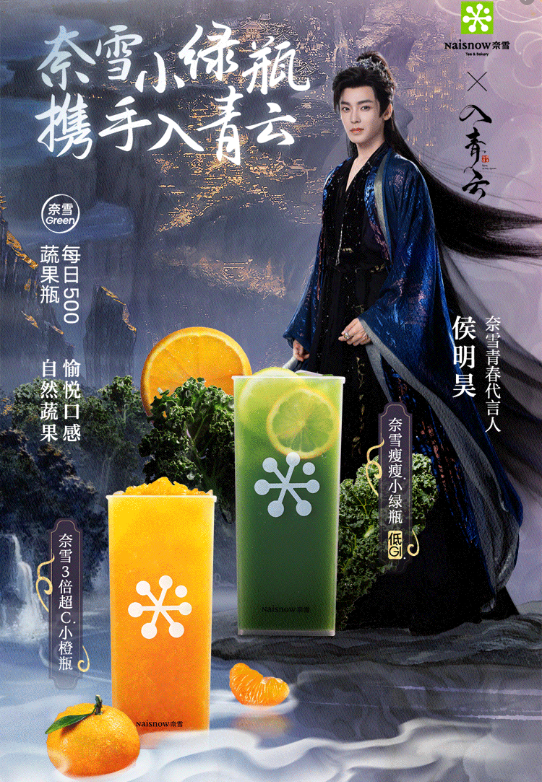 奈雪的茶 ×《入青云》联名上新「瘦瘦小绿瓶」和「3倍超C小橙瓶」
