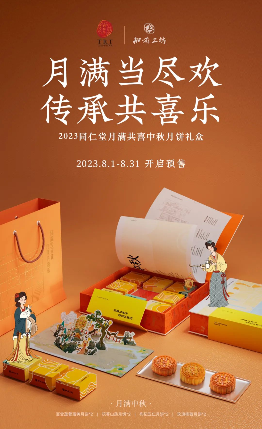 2023同仁堂月满共喜中秋月饼礼盒2023.8.1-8.31开启预售,共有枸杞五仁、玫瑰椰蓉、百合莲蓉蛋黄、茯苓山药四种草本口味,预售价268元/盒,预计发货时间8月中下旬。原文链接