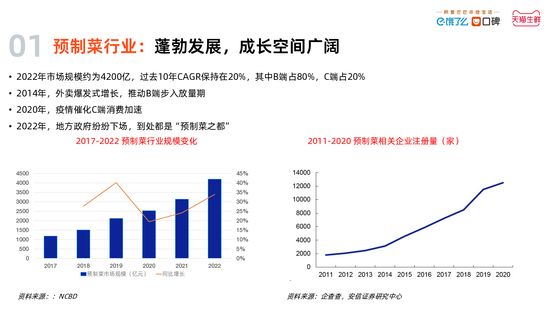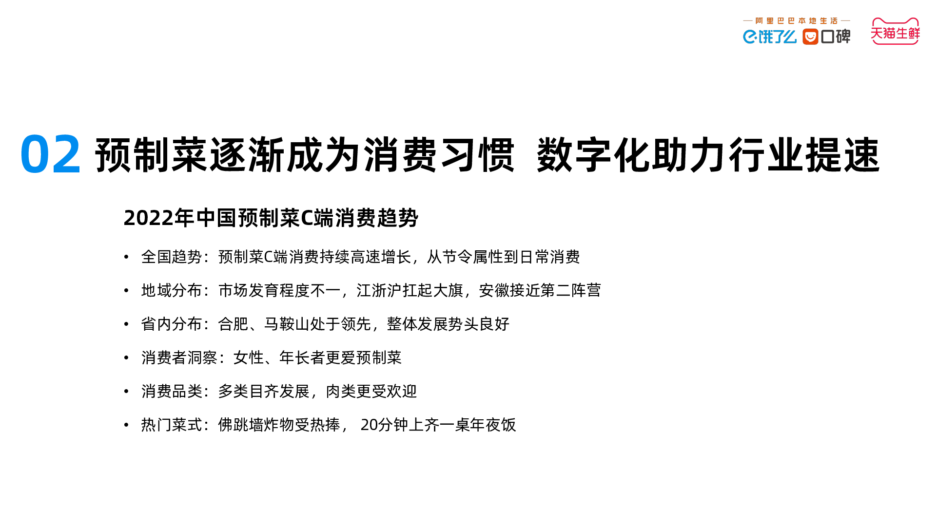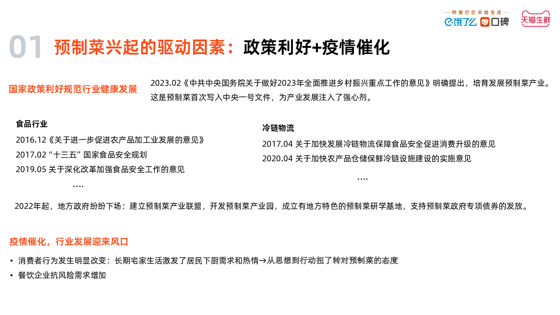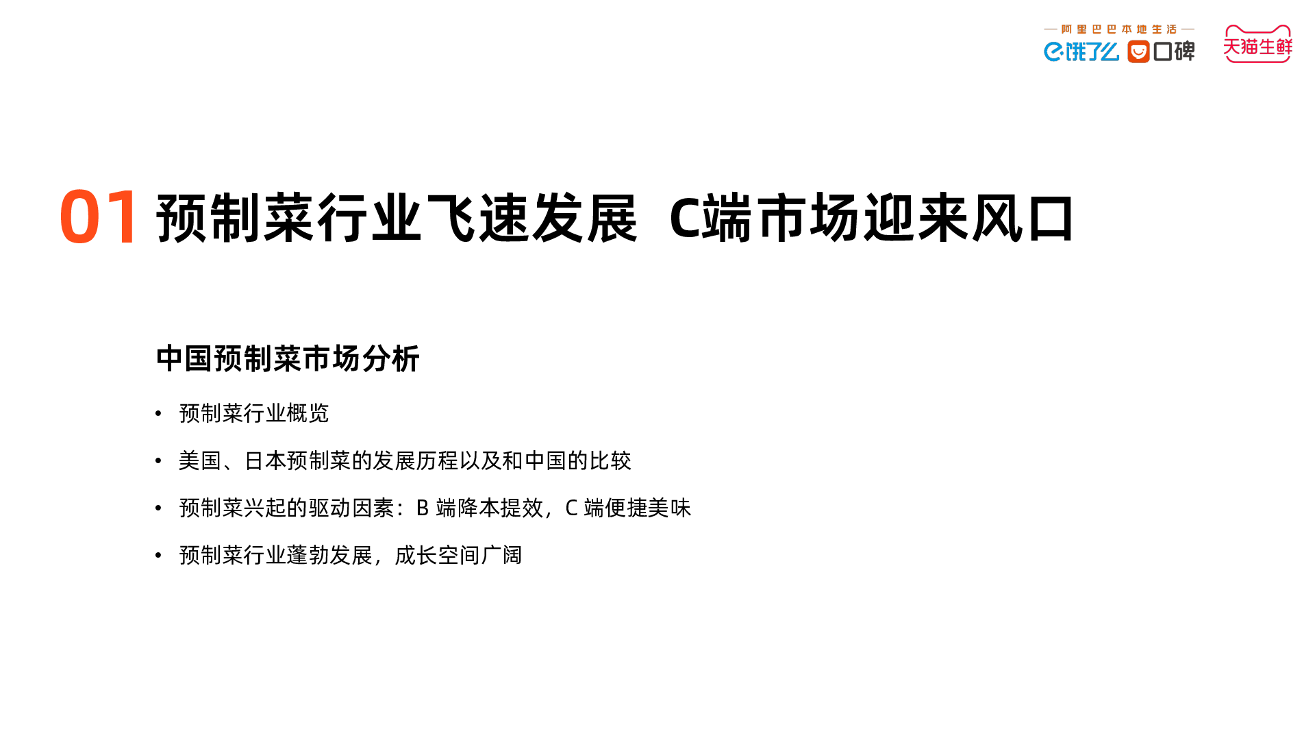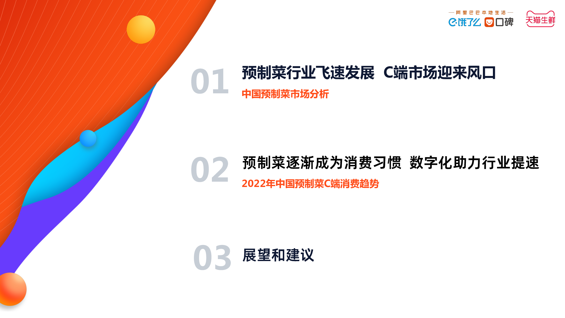 1、预制菜行业飞速发展,C端市场迎来风口 2、预制菜逐渐成为消费习惯,数字化助力行业提速 3、展望和建议