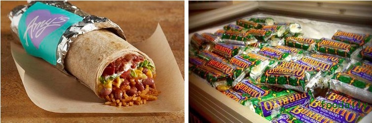 Amy's汽车餐馆的墨西哥卷饼(左图,Amy's 汽车餐馆提供) 和Amy's公司预包装的墨西哥卷饼