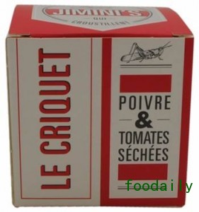 产品描述: Jimini’Jimini’s Le Criquet Poivre & Tomates Séchées(胡椒油炸西红柿口味蟋蟀)可以整个整个的吃,也可以不吃头部和翅膀。蟋蟀在欧洲养殖,在法国制成食品,据说十分酥脆。
