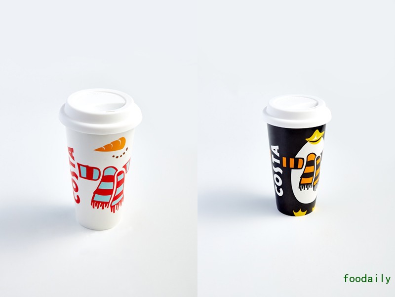 另外三款常规的带把手杯子则延续了 COSTA 一贯的风格,其实卖相也相当的好,清清爽爽的,特别是搪瓷杯出现在这样的连锁咖啡品牌店里面很少见。如果它们让你放弃买今年的圣诞杯,我是完全能理解的。