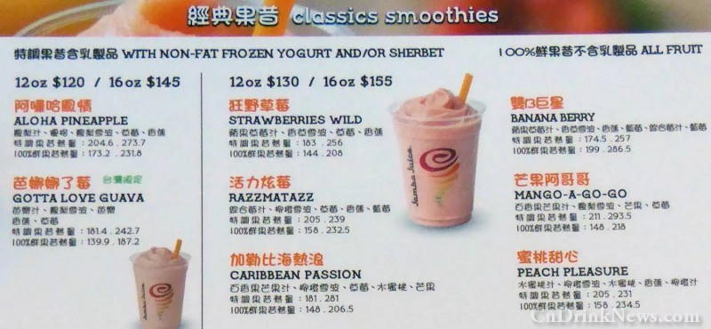 Jamba Juice推出的果昔(Smoothie)不是奶昔也不是冰沙,更不是纯粹的果汁,这款新食尚是由新鲜精选的水果搭配雪波(sorbet)或优格,以特制比例呈现水果的自然风味,形成比果汁更浓郁绵密的口感。