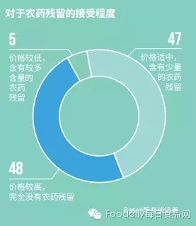 近九成消费者对食品添加剂持否定态度;整体上,近四分之一被访者表示会接受完全没添加剂但价格较高的食品;近五成被访者表示可以接受价格较高但完全无农药残留的蔬果。