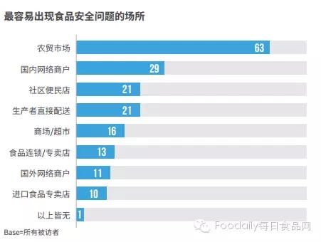 消费者对于农贸市场食品安全严重缺乏信任,而认为国外进口渠道食品安全性最能得到保证。