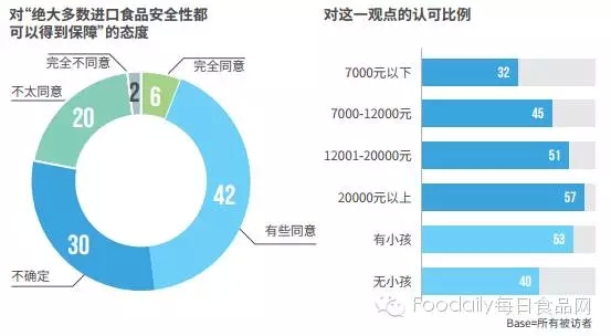 而近半数被访者认为绝大多数进口食品安全性可以得到保证;家庭收入越高,对其安全性越认可;对于绿色/有机食品,消费者能够接受一定程度的价格增长;而真假难辨是消费者不考虑绿色/有机食品的最主要原因。
