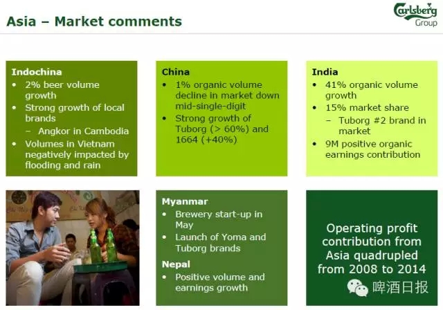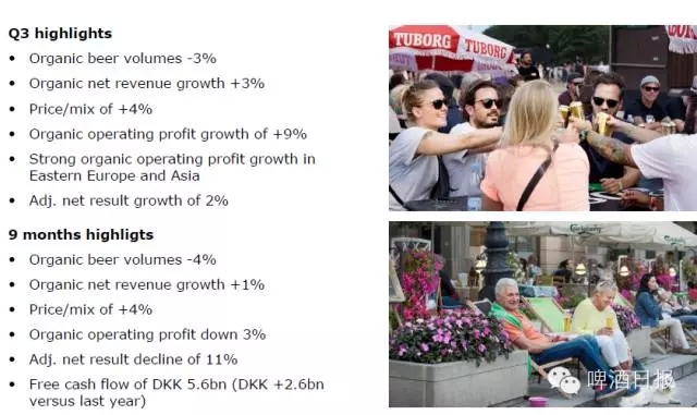 在乐堡品牌和嘉士伯品牌的推动下,亚太市场总体还是占得一些市场份额,前三季度啤酒销量有机增长3%,营收增长6%,但是中国市场拖了后腿。