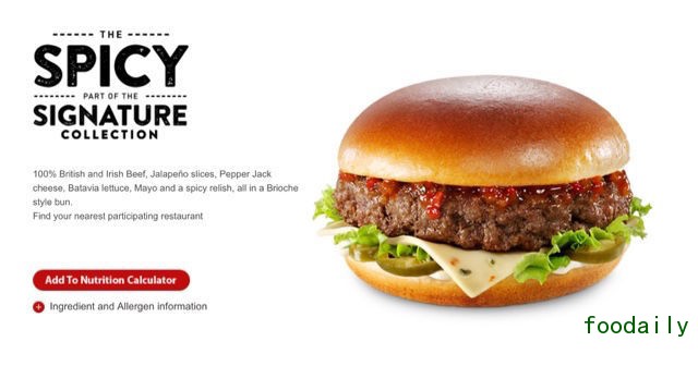 分为原味、辣味和烧烤三种口味,麦当劳在宣传海报上列出了每一种用料的出处,牛肉来自英国和爱尔兰,辣椒来自墨西哥,甚至连里面的一片巴达维亚生菜都写的明明白白。