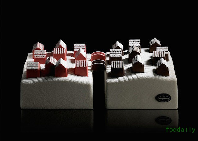 每年圣诞季,哈根达斯都会推出与设计师的合作款,比如去年与日本设计工作室 Nendo 合作的冬日小村庄蛋糕,2013 年与瑞典设计团队 Front 合作的云朵状冰激凌蛋糕等。