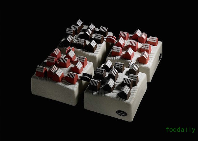 去年,Nendo 并没有选择常见的圣诞元素,而是从亲人团聚的角度出发,设计了一款冬日小村庄模样的蛋糕,用巧克力制成的一个个小房子紧挨着,营造家庭般的温暖气氛。如果一次性购买几个蛋糕的话,还可以获赠巧克力制作的“桥梁”,让数个蛋糕联结起来。